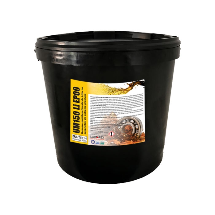 UM150 Li EP00 este o unsoare multifunctionala antifrictiune, semifluida, produsa prin ingrosarea uleiului de baza mineral cu sapun pe baza de litiu si prin adaugarea de aditivi adecvati. Aceasta unsoare este recomandata pentru utilizarea in instalatii centralizate de lubrifiere, in vehicule auxiliare de transport, precum si in echipamentele de tubulatura lunga care opereaza in aer liber. Fiind o unsoare semifluida, este adecvata pentru utilizare in toate tipurile de unitati de viteze in care producatorii recomanda ungere cu unsoare.